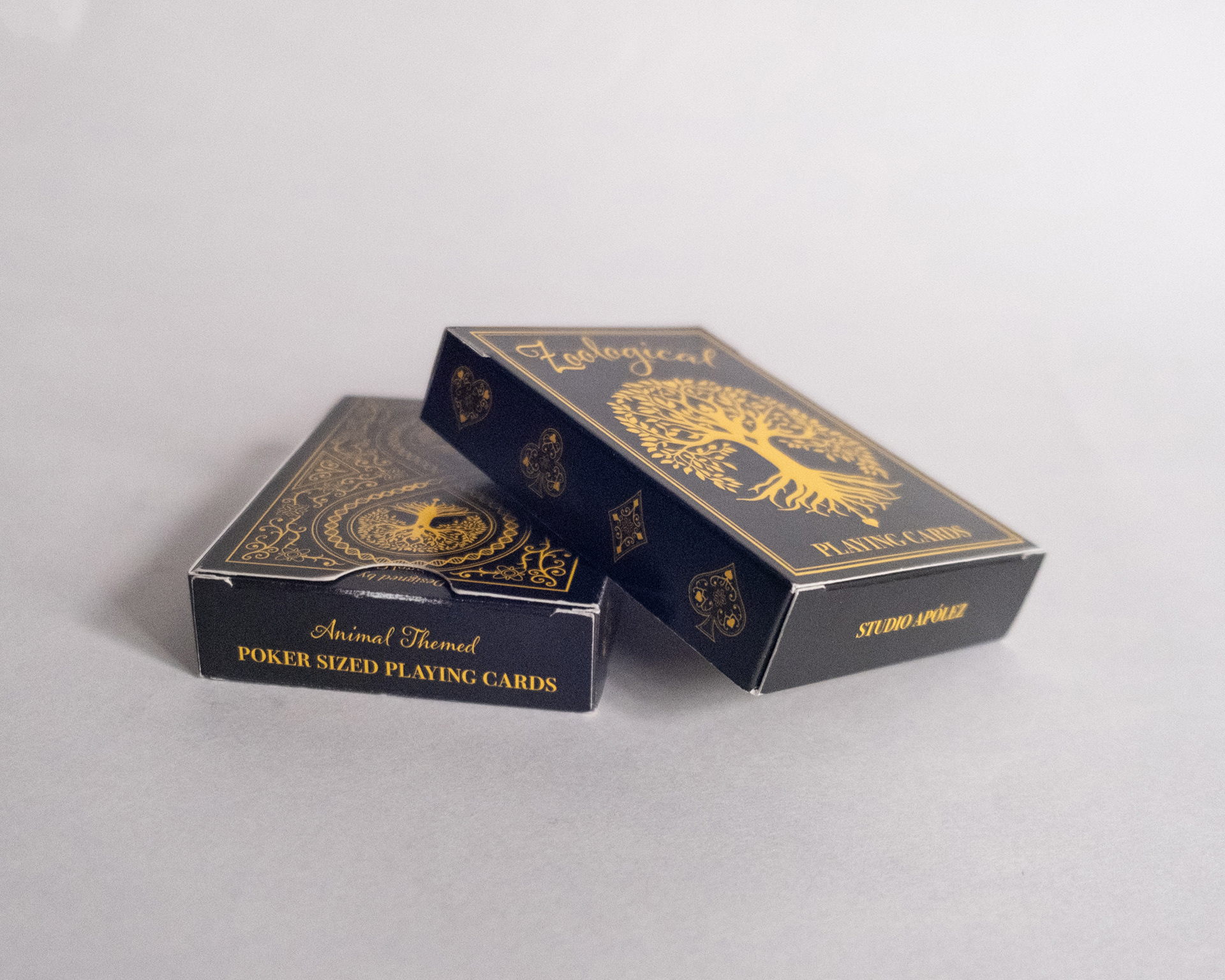 The goal when illustrating and designing these poker sized playing cards was to combine the regal and elegant aesthetics of traditional playing cards with the animal kingdom. I united imagery of the tree of life, DNA, and floral patterns with the iconic suits of poker. Each suit’s face cards were illustrated based on different types of vertebrates.